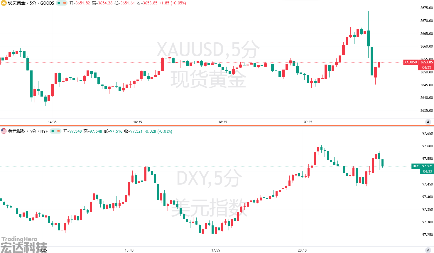 数据公布后,现货黄金一度冲破3670关口,但随后有所回落,美元指数先跌后涨,并维持坚挺。