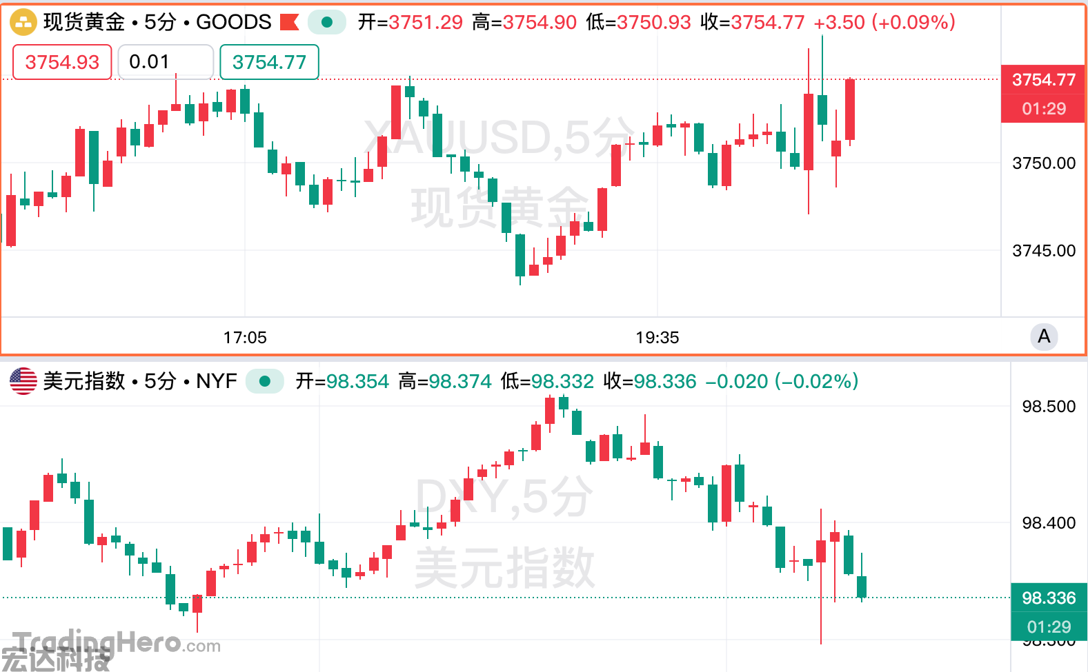 数据公布后,现货黄金短线小幅下挫后反弹。