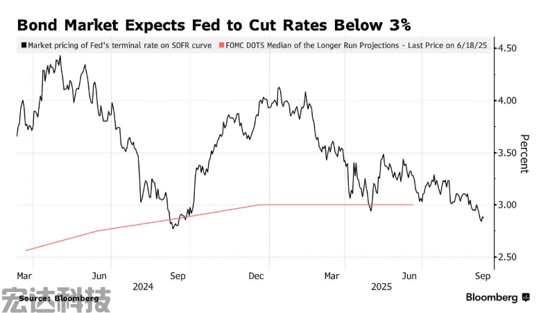 交易员目前押注年底前将有3次25个基点的降息,且到2026年同期可能再进行数次同等幅度的降息。这将使联邦基金利率降至略低于3%的水平——6月时美联储官员预测的“长期利率”(被视为“中性利率”的替代指标,既不刺激也不抑制增长)正是3%。