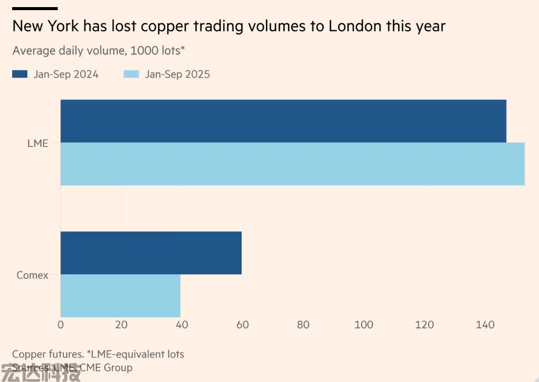 与此同时,作为芝加哥商品交易所集团(CME Group)旗下规模较小的交易所,Comex今年前9个月的铜期货日均交易量较去年同期下降34%,这在很大程度上是由关税不确定性导致的。