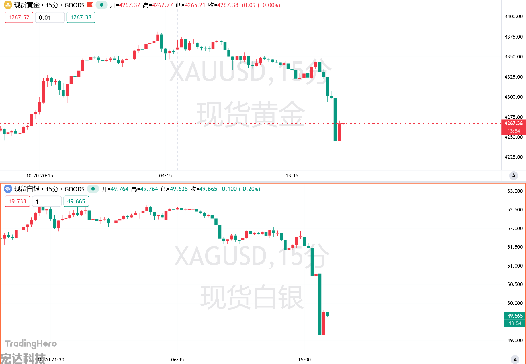 黄金盘中闪崩130美元、白银重挫6%!又是“倒车接人”?-市场参考-宏达科技数据