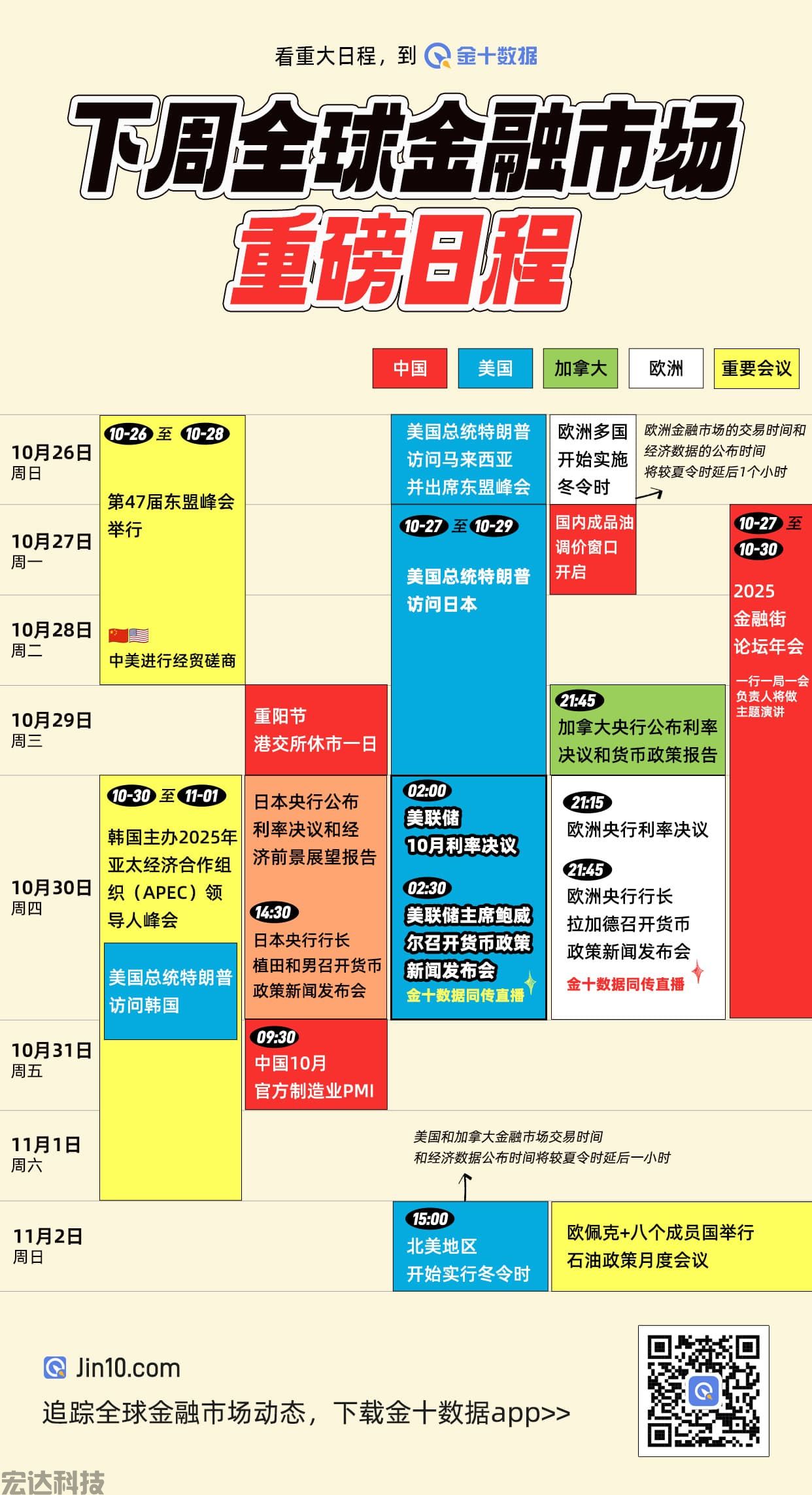 下周全球金融市场重磅日程:美联储、欧洲央行利率决议等-市场参考-宏达科技数据