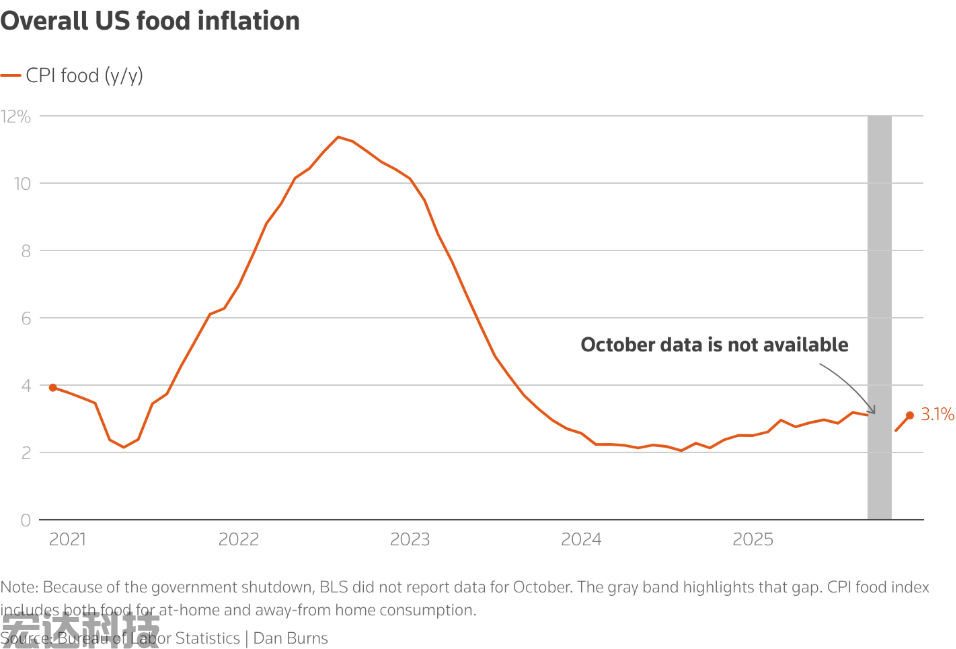 综合来看,这些演讲展现出特朗普正艰难调和其核心主张——已解决生活成本危机——与现实之间的矛盾:过去一年通胀率接近3%,选民购买日常食品的支出仍在增加。例如,自特朗普一年前上任以来,碎牛肉价格上涨18%,研磨咖啡价格上涨29%。
