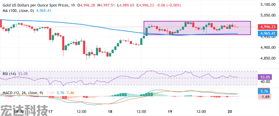 Fxstreet分析师指出,周四,黄金守住了100小时简单移动平均线(SMA),并从该均线反弹。不过,过去两天左右缺乏持续的买盘以及区间波动的价格走势,令看涨的交易员需保持谨慎。目前,该均线位于4965.41美元,为价格提供了附近的动态支撑。