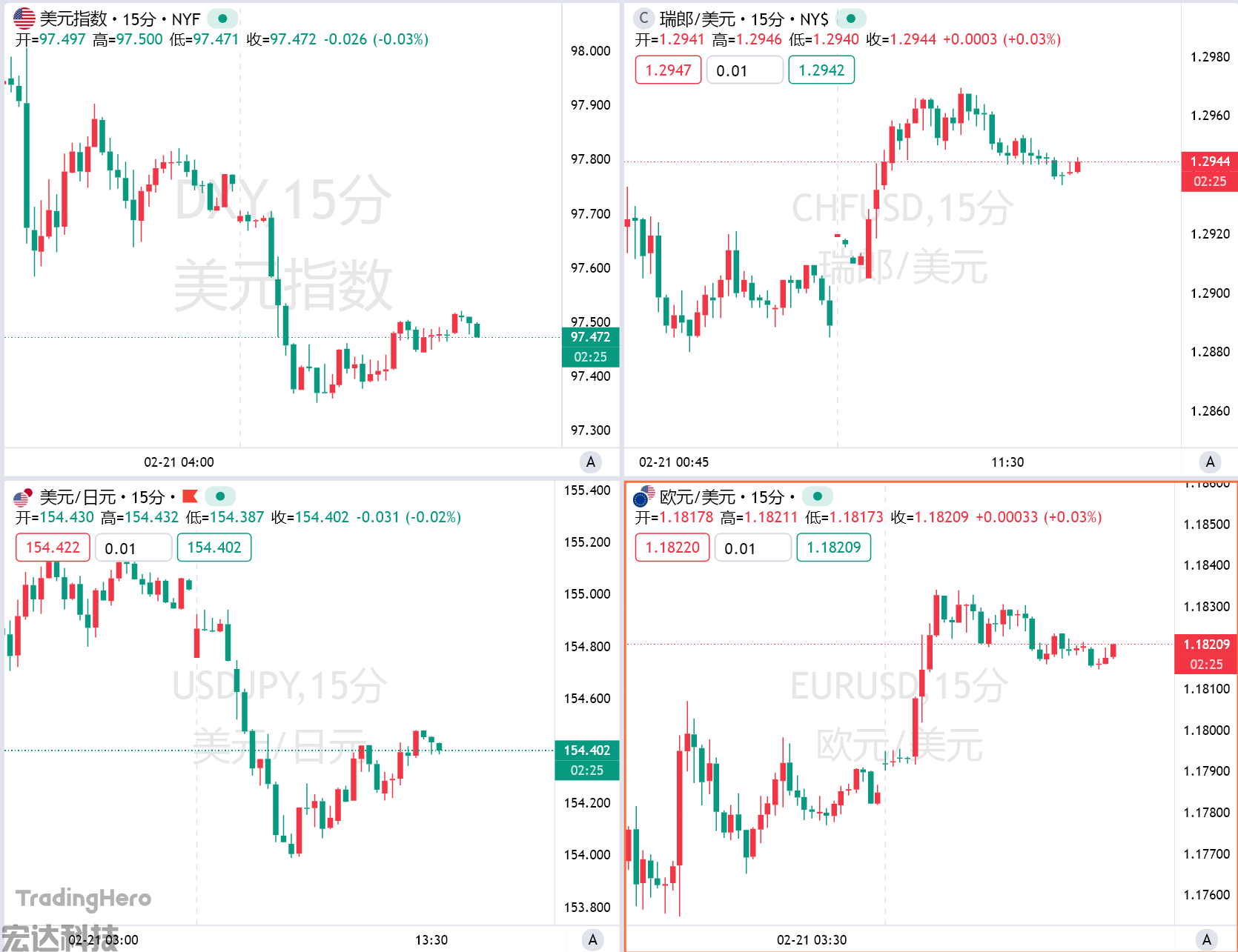 美元指数下跌0.3%,延续上周五跌势,因日本与中国休假,市场交投清淡。在美国最高法院裁定特朗普对等关税政策违法后,特朗普宣布对全球商品征收15%关税,瑞郎、日元与欧元兑美元领涨。