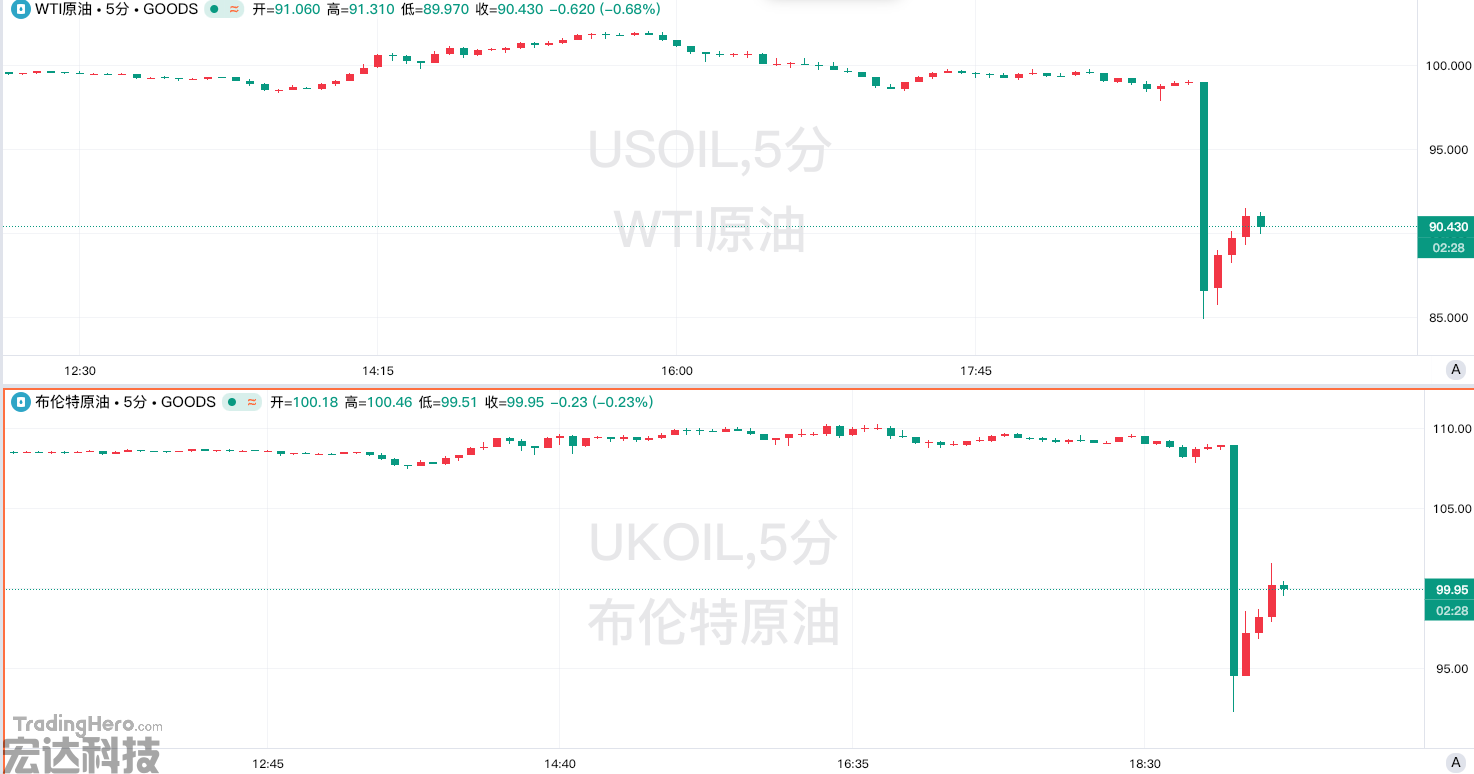 突发大逆转!特朗普“延后”对伊打击,原油闪崩、黄金狂飙超百美元!-市场参考-宏达科技数据