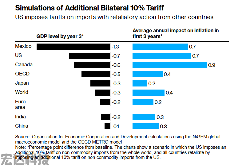 本月早些时候,贝利表示关税对通胀的影响"可能不明确",但他警告称,英国经济面临的风险"很大"。经济合作与发展组织(OECD)本周警告称,发达经济体的增长将放缓,通胀将上升,如果贸易紧张局势升级,情况可能会显著恶化。