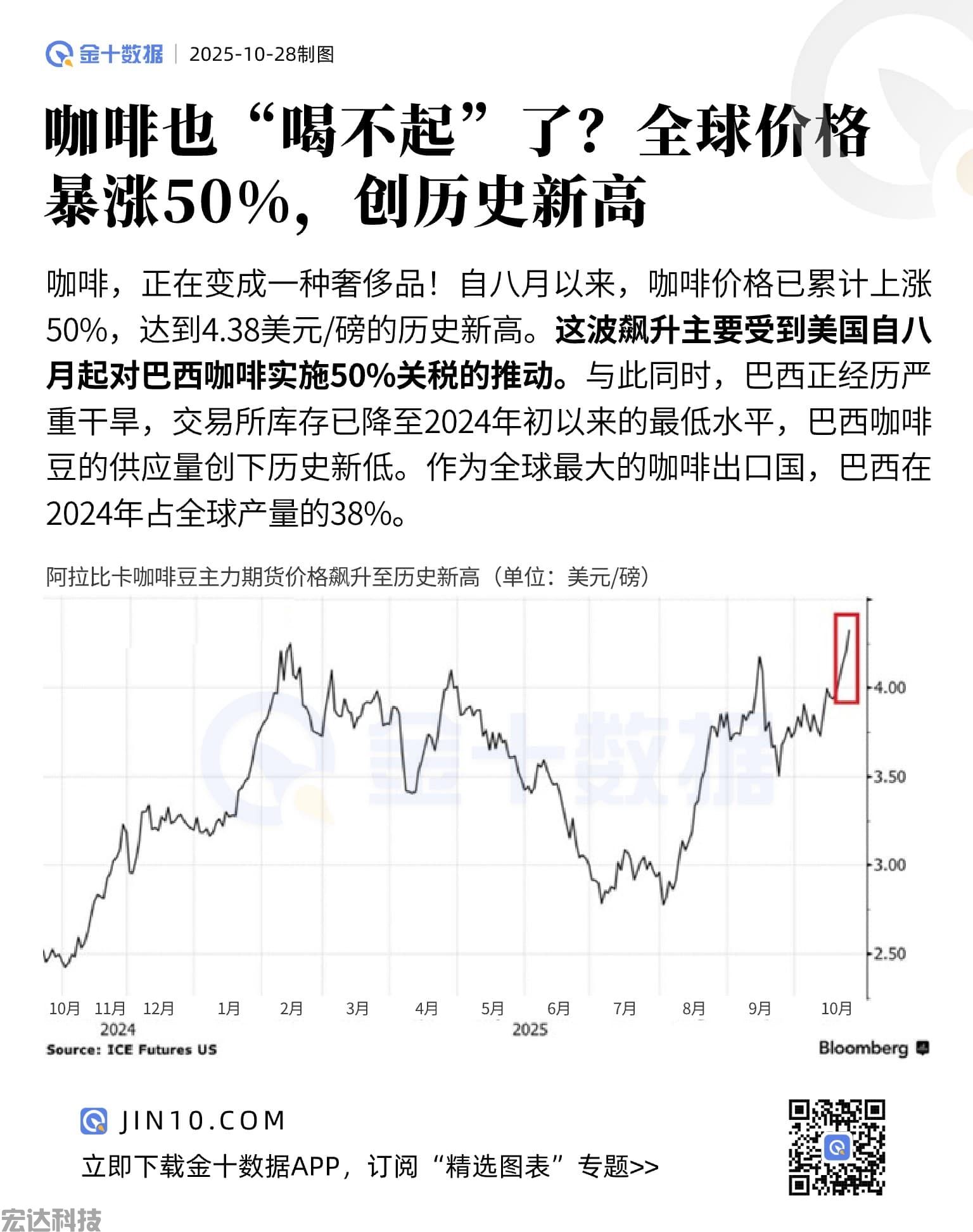 咖啡也“喝不起”了?全球价格暴涨50%,创历史新高-市场参考-宏达科技数据