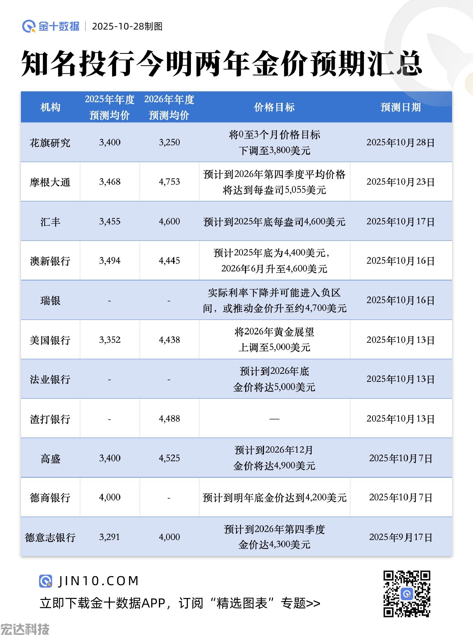 金十整理:知名投行今明两年金价预期汇总-市场参考-宏达科技数据