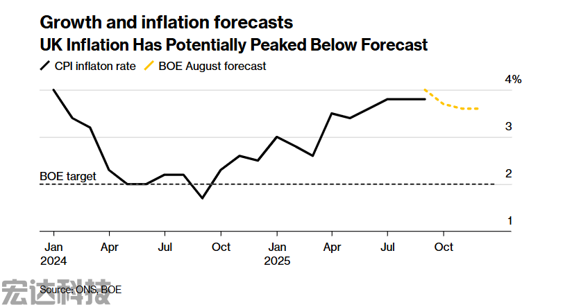 在9月份物价增长出人意料地保持在3.8%之后,大多数经济学家预计英国央行将下调其近期通胀预测。该央行此前曾预计当月通胀率将达到4%的峰值。
