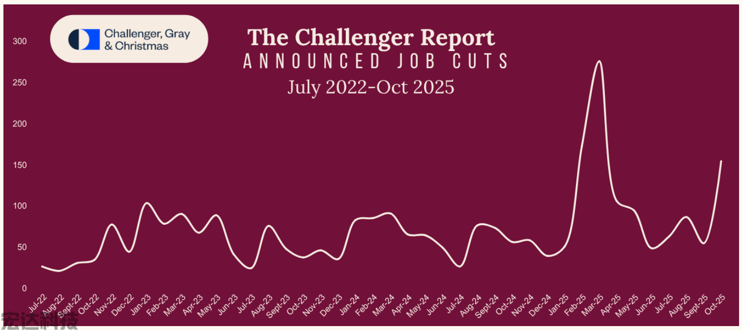 美国10月挑战者企业裁员报告全文:同比激增175%!-市场参考-宏达科技数据