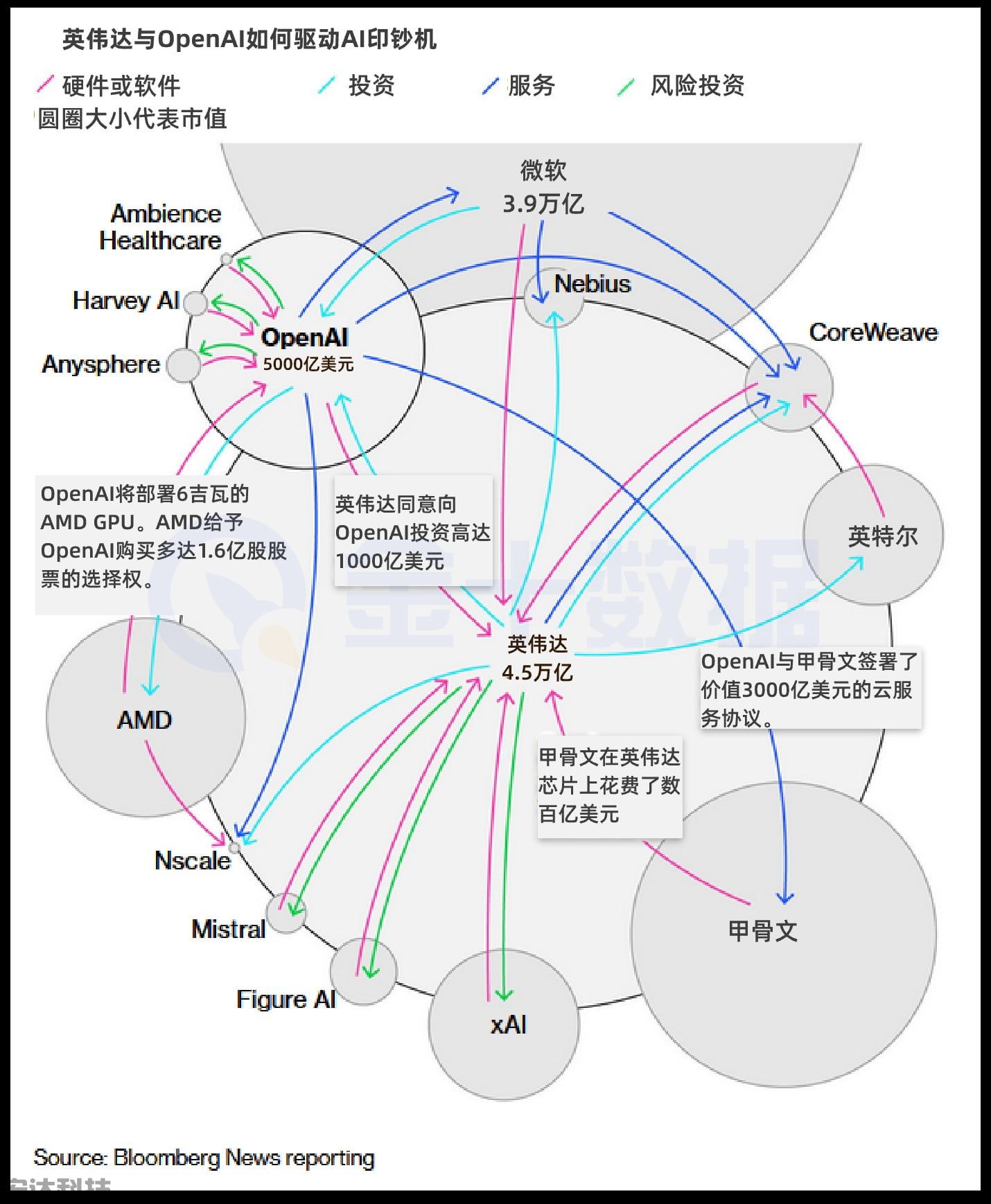 这位因准确预测2008年次贷危机而闻名的知名投资者分享了一张图表,突出显示了微软(MSFT)、OpenAI、甲骨文(ORCL)和英伟达(NVDA)等主要科技巨头之间的AI投资协议。在图片旁边,他指责其中几家公司存在“可疑的收入确认”行为,暗示他们报告的增长可能并未反映真正的市场需求。