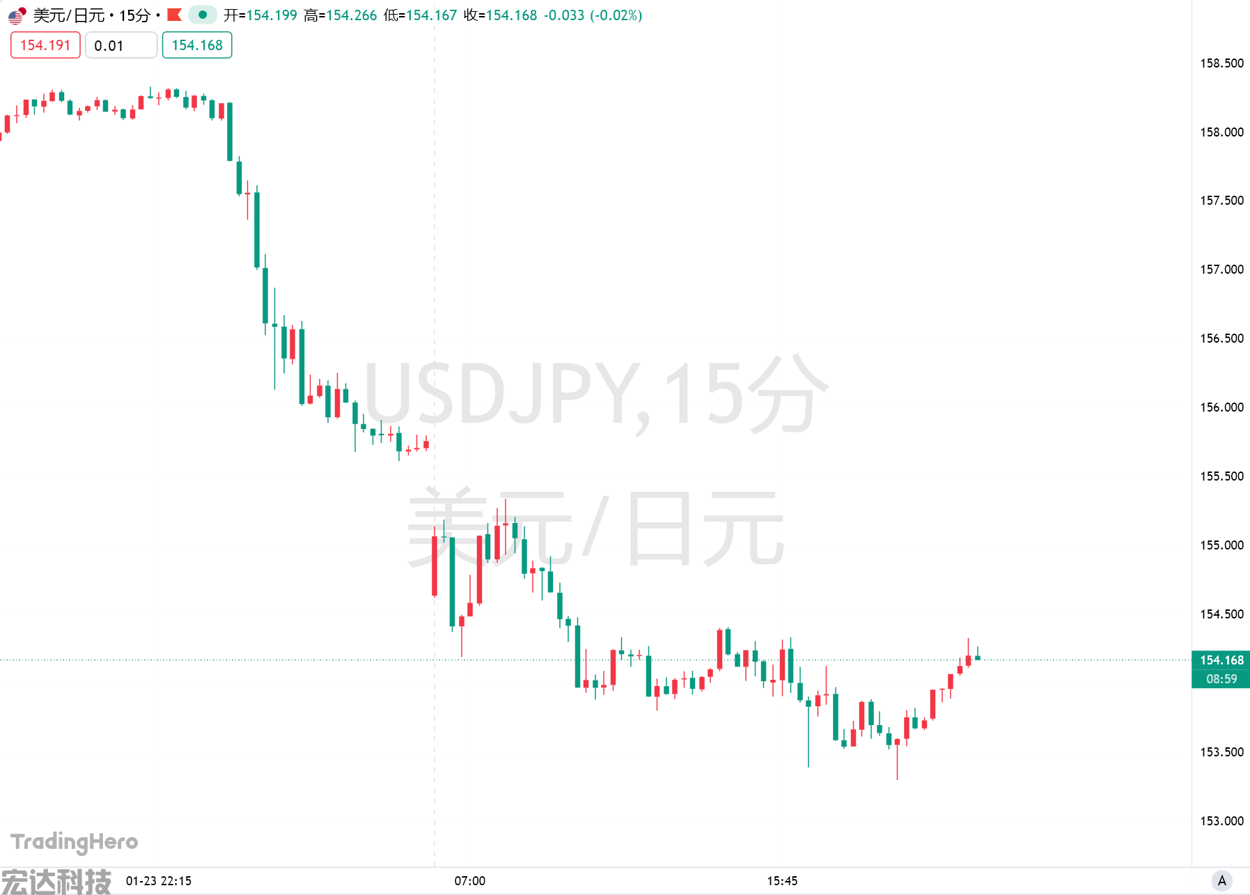上周五,美元兑日元汇率一度冲高至159,而周一该汇率一度回落至154以下。