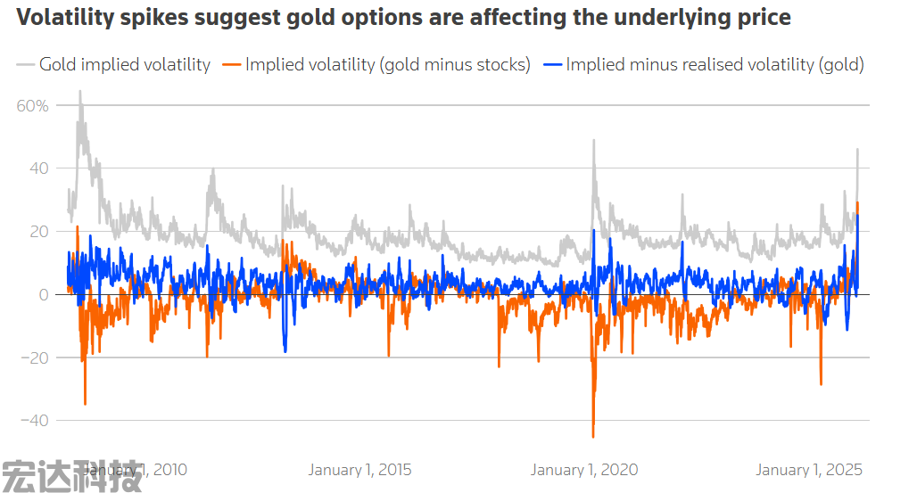 然而,分析指出,更有道理的想法可能是,期权市场的变幻莫测正在扰乱黄金作为地缘政治冲突晴雨表的作用。