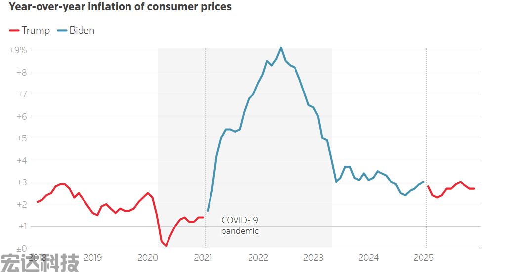 近期的五场演讲中,特朗普仅两次承认物价仍过高,但将其归咎于拜登。而特朗普之所以在2024年当选,正源于选民对拜登处理通胀(2022年曾飙升至9%以上)和非法移民问题的不满。