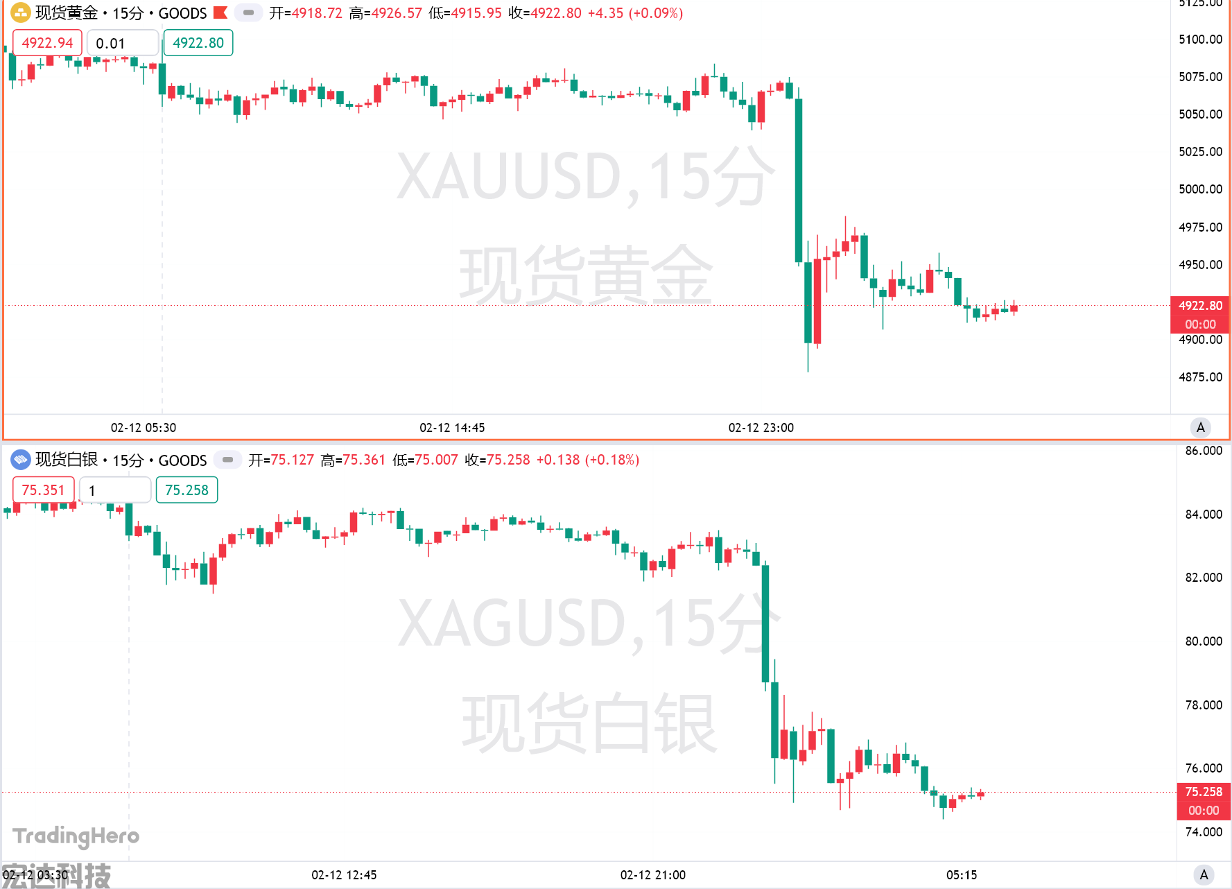 CPI前夜惊魂!AI恐慌拖累金属,黄金、白银盘中闪崩-市场参考-宏达科技数据