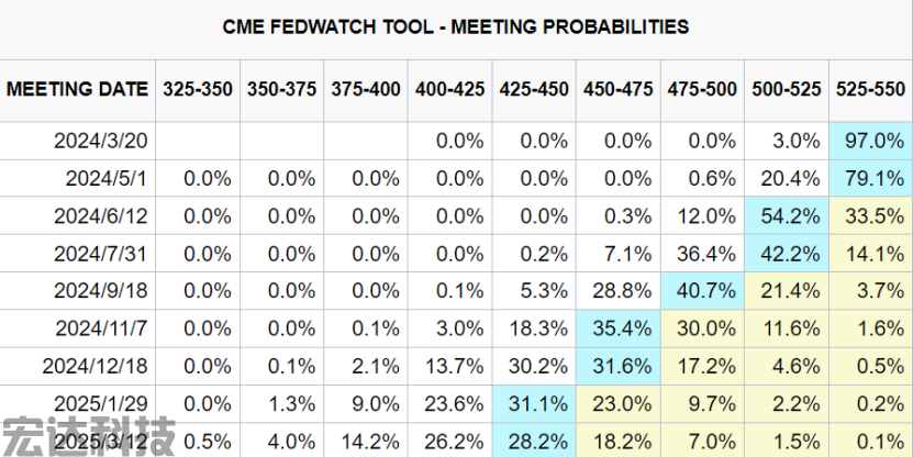 FEDWATCH显示,美联储6月降息预期为54.2%,年底利率可能降至4.75%。
