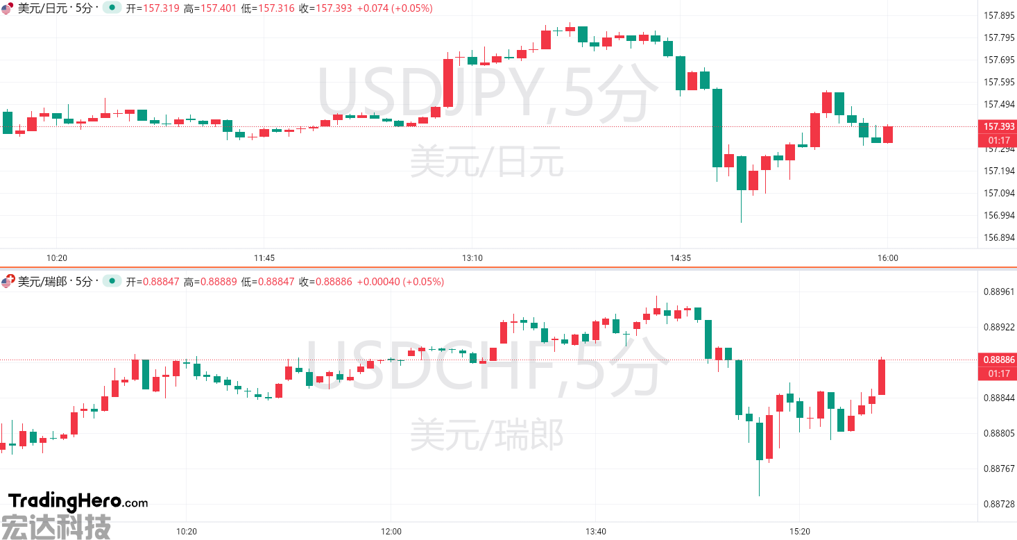 据交易员称,在全球发生了广泛技术问题的消息发布后,使用算法交易的基金买入日元和瑞士法郎。美元兑日元此前盘中短线一度走低近70点,最低至156.95,现已回升;美元兑瑞郎涨幅一度收窄至0.1%。美国国债收益率在这一消息传出后也一度有所下跌。